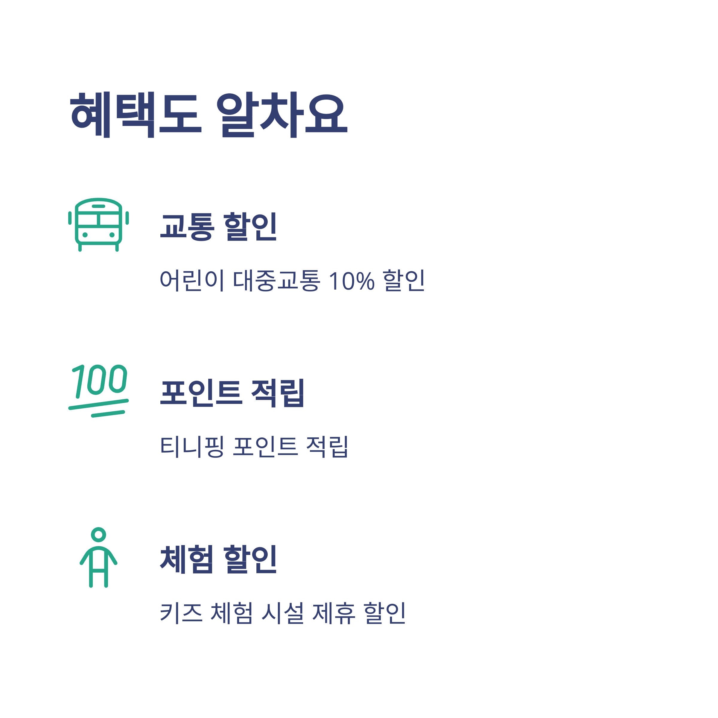 | 어린이 대중교통 할인 | 10% 할인 | 월 최대 3만원 |