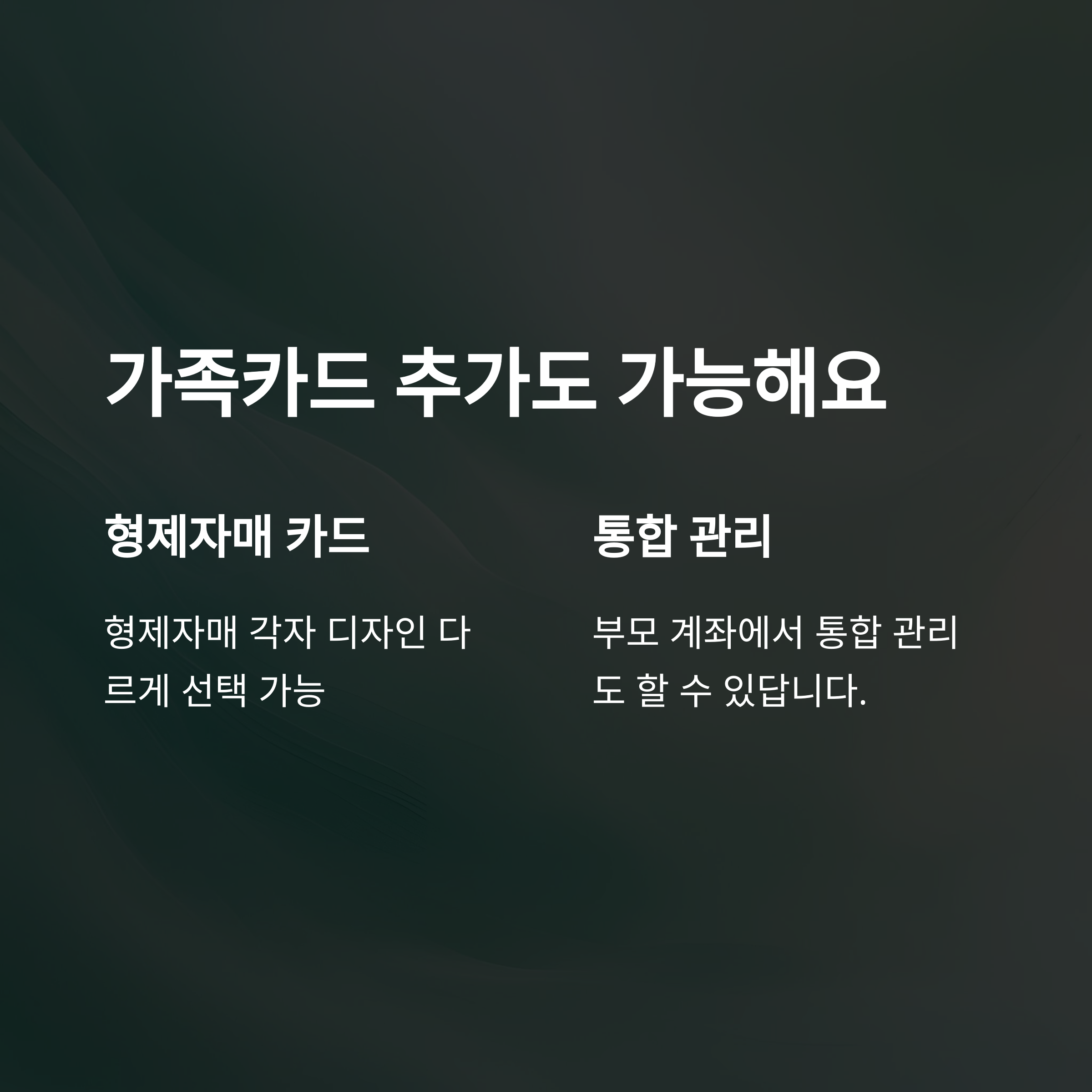 A. 네, 부모 계좌 기준으로 형제자매 카드 추가 가능합니다.