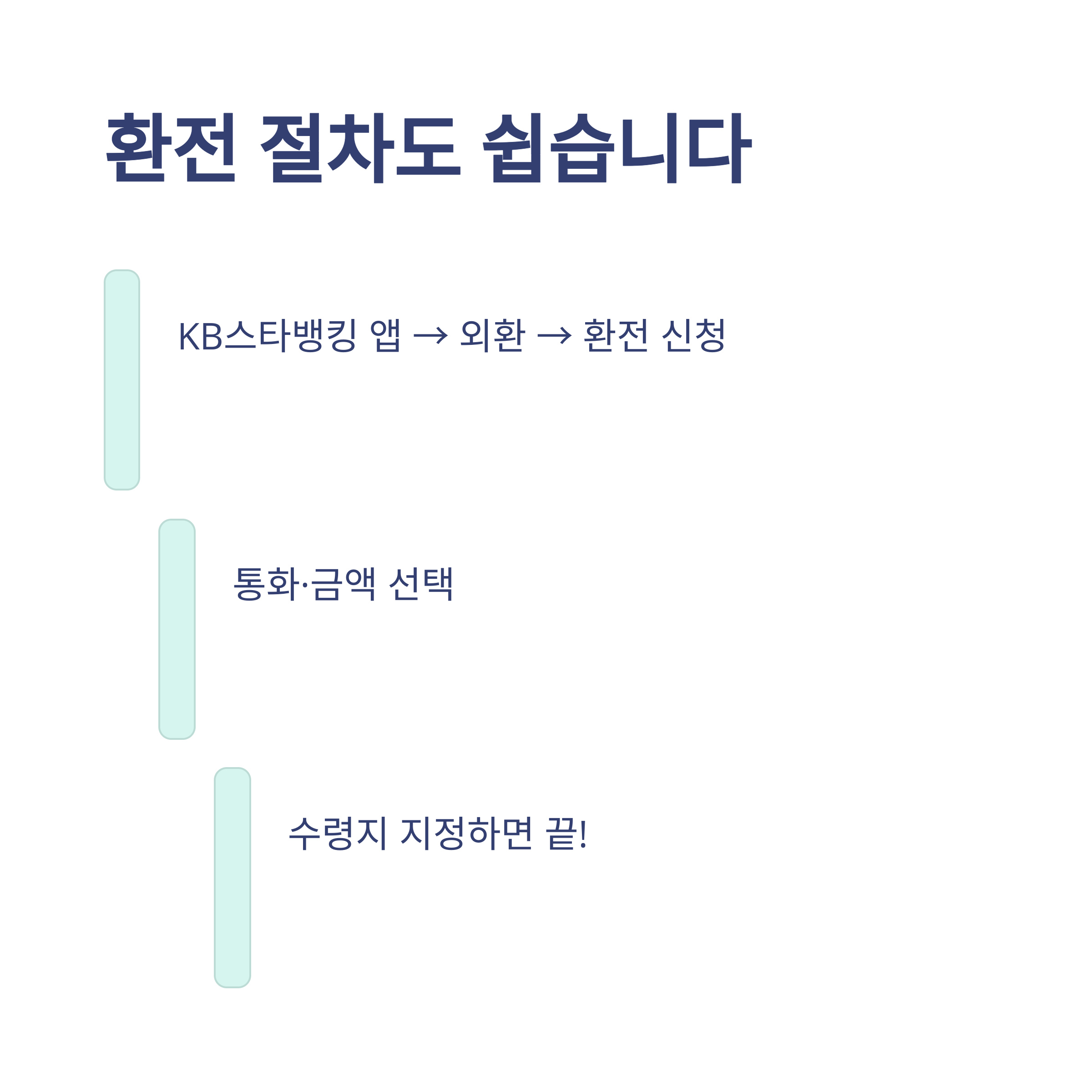 - 환전 방법: 인터넷뱅킹, KB스타뱅킹, 영업점, 공항창구