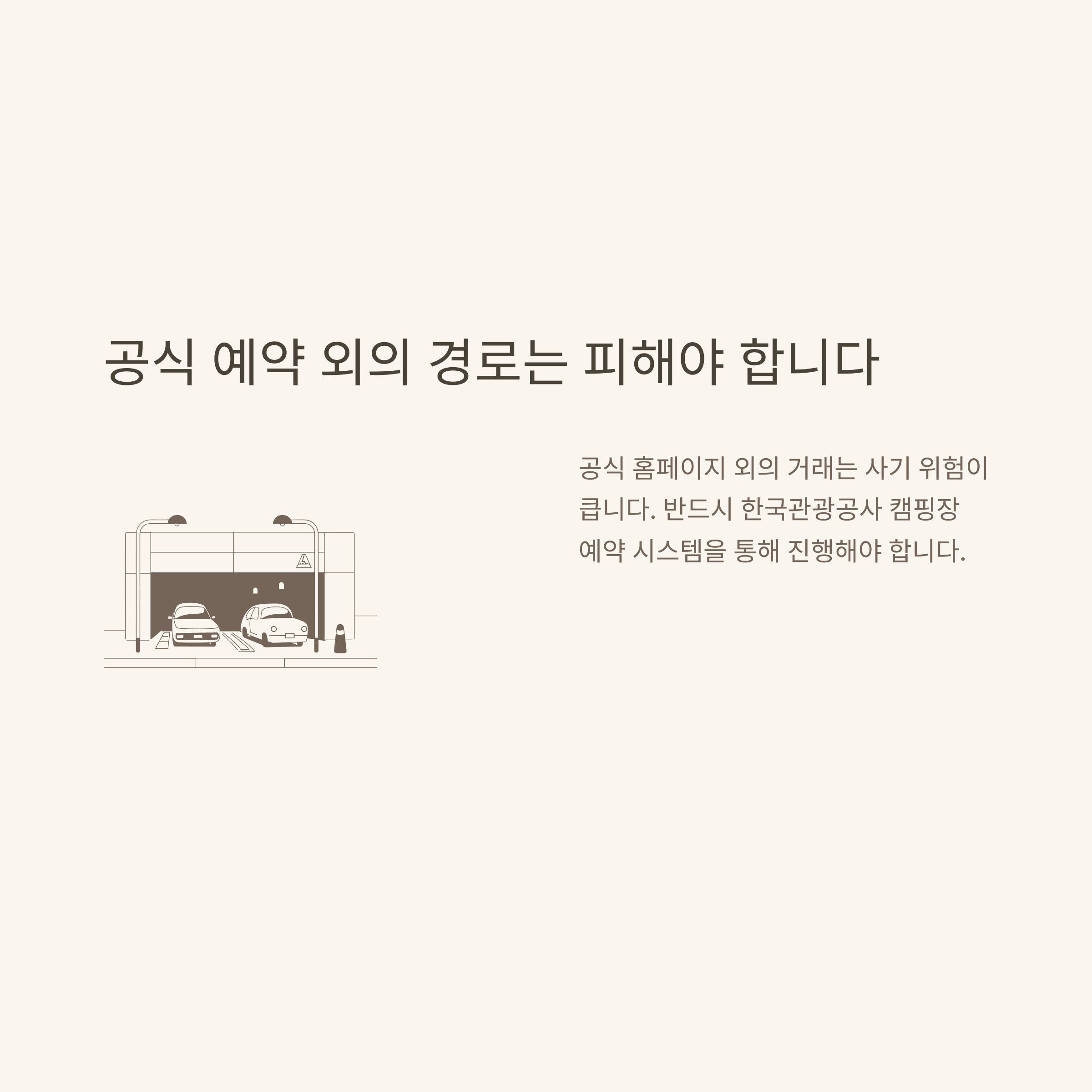 망상오토캠핑장예약은 반드시 공식 홈페이지(한국관광공사 캠핑장 통합예약 시스템)에서만 진행해야 안전합니다. 저도 처음에는 여러 캠핑장 정보 사이트를 헤매다가, 결국 공식 사이트에서만 제대로 예약이 가능하다는 걸 깨달았습니다. 공식 외 사이트나 중고거래, 카페 직거래 등은 사기 피해 우려가 있어 꼭 주의해야 합니다. 공식 예약 방법을 요약하면 아래와 같습니다.