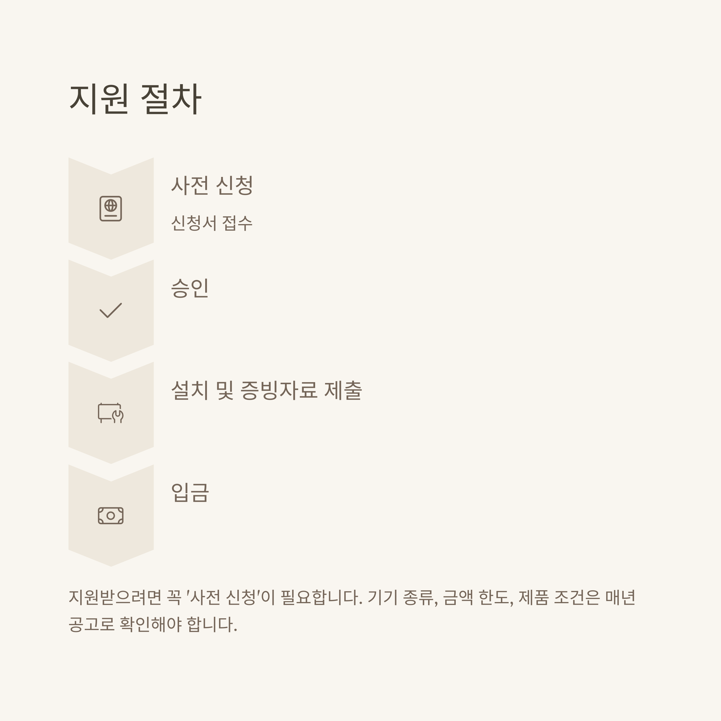 이전에는 선구매 후 신청이 가능했던 시절도 있었지만, 최근 사업은 대부분 사전 신청 → 승인 후 교체 → 사후 정산 방식으로 바뀌었습니다.