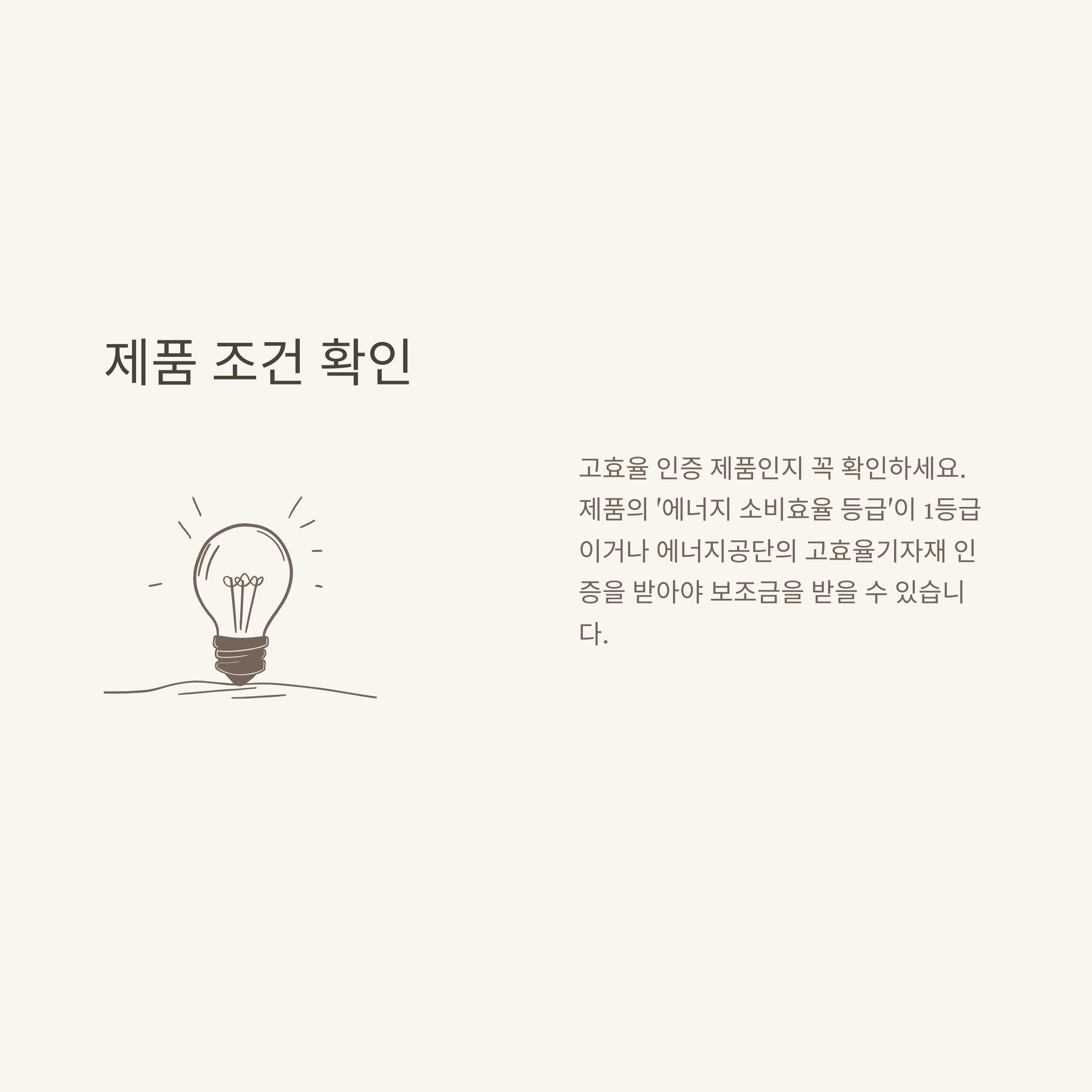 저는 설치 후 사진과 구매 영수증을 누락해서 보완 요청을 받았는데요, 이후 바로 추가 제출하니 문제가 없었습니다. 특히 제품이 '고효율기자재 인증' 제품인지 사전에 확인하셔야 합니다. 에너지소비효율등급 인증 검색에서 확인할 수 있어요.