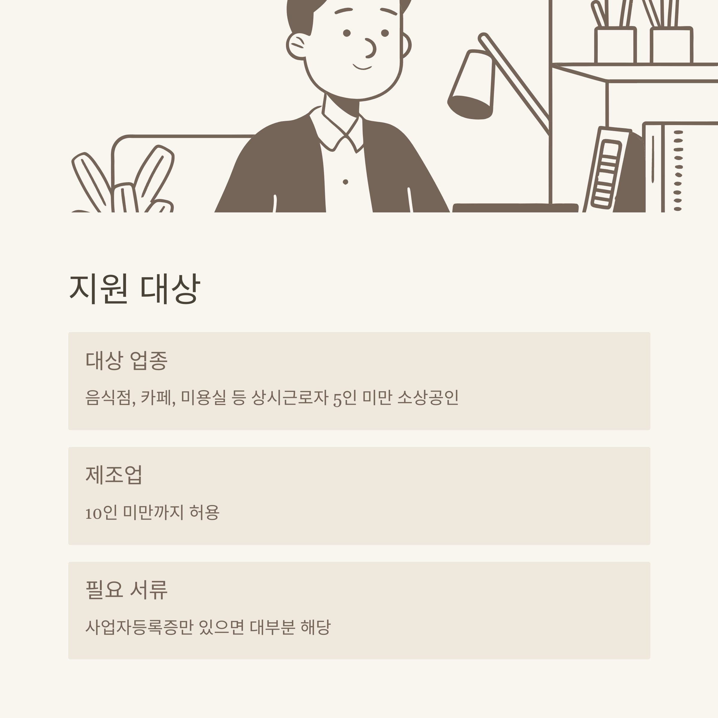 | 지원 대상 | 소상공인 사업자 (5인 미만 일반업종) |