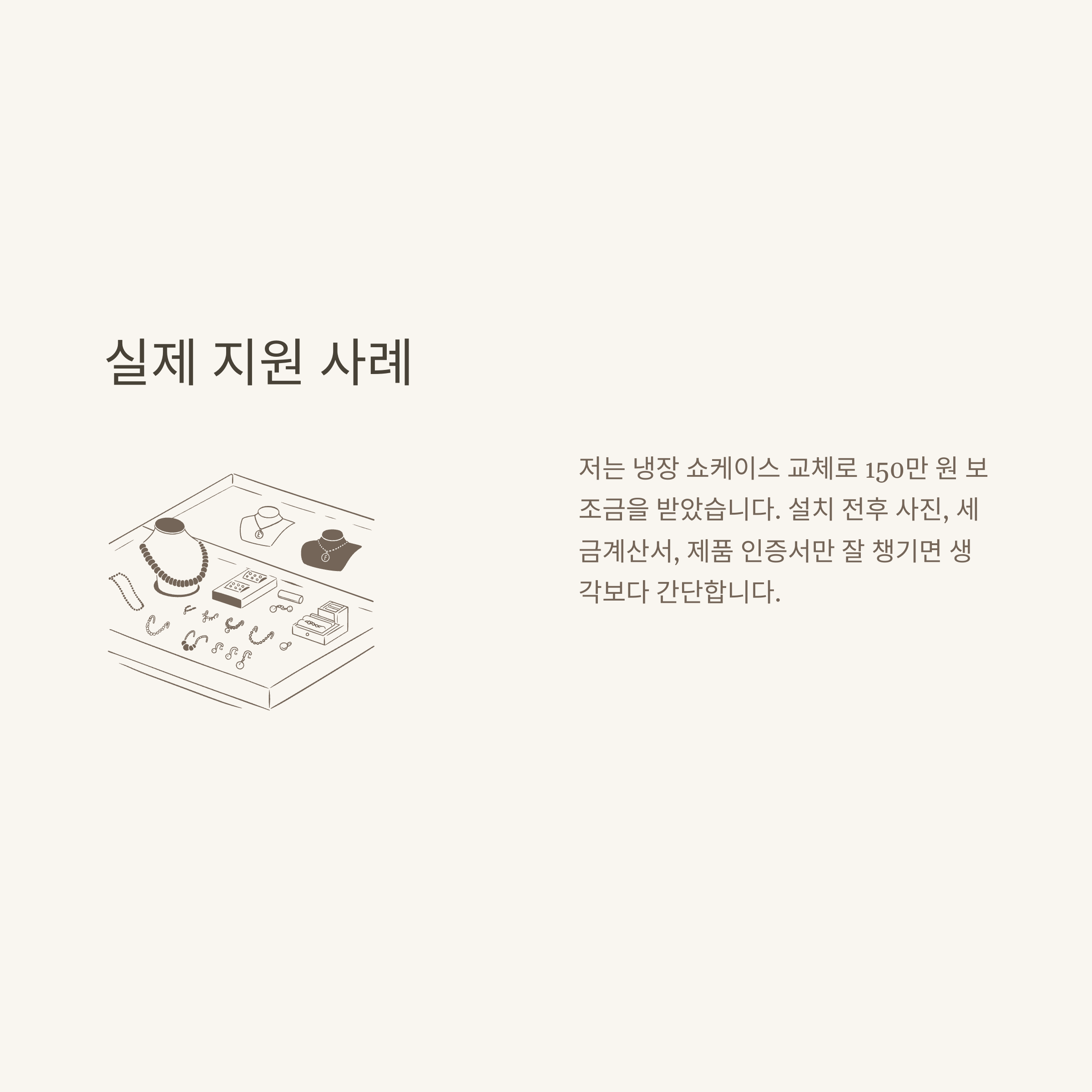 저는 10년 가까이 사용하던 쇼케이스 냉장고를 교체하면서 이 사업에 참여했는데요, 솔직히 처음엔 의심부터 했습니다. "이런 게 진짜 될까?" 하고요. 그런데 직접 해보니 생각보다 훨씬 간단하고 실제로 보조금도 받았습니다.