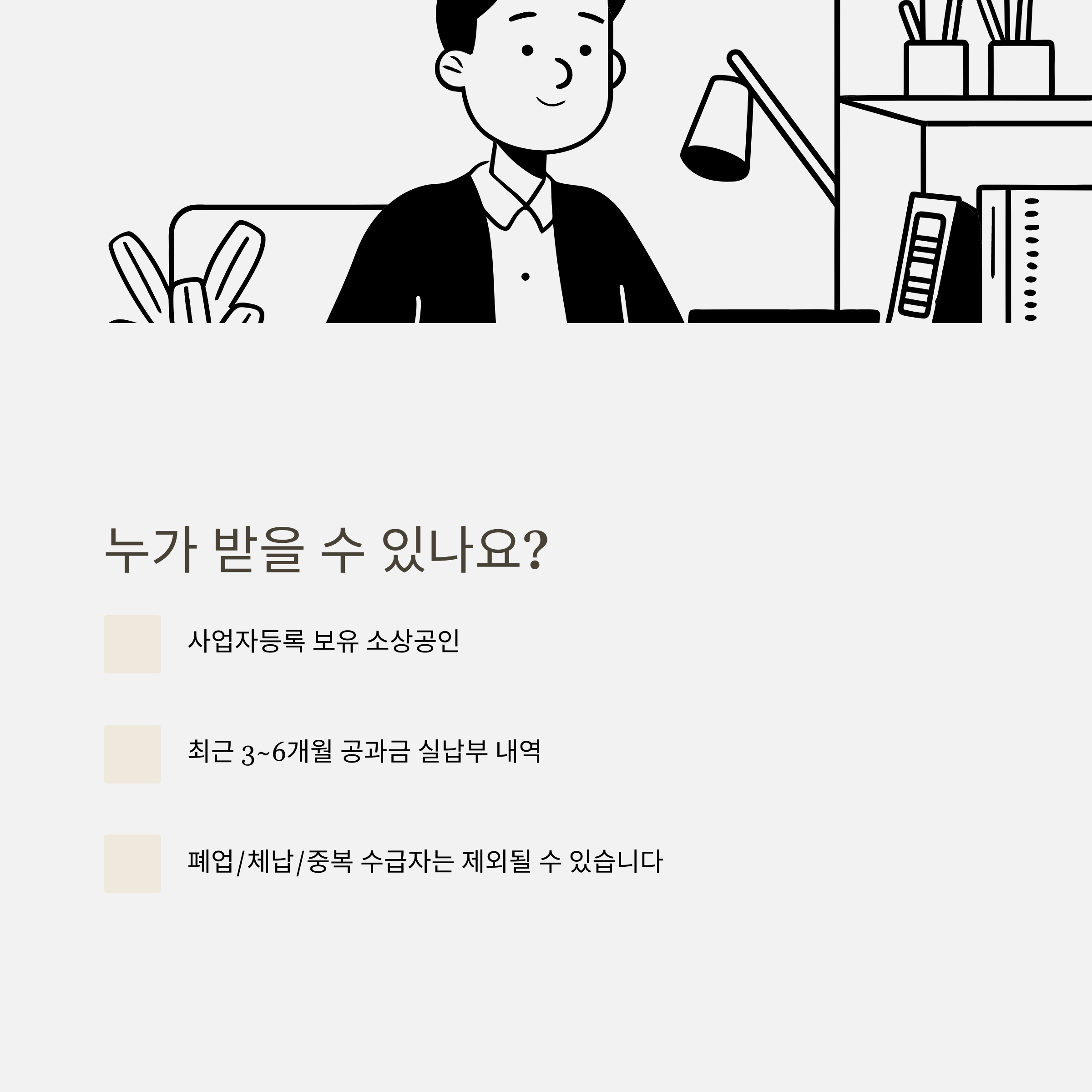 | 지원대상 | 사업자등록 소상공인 + 최근 공과금 실납부 |