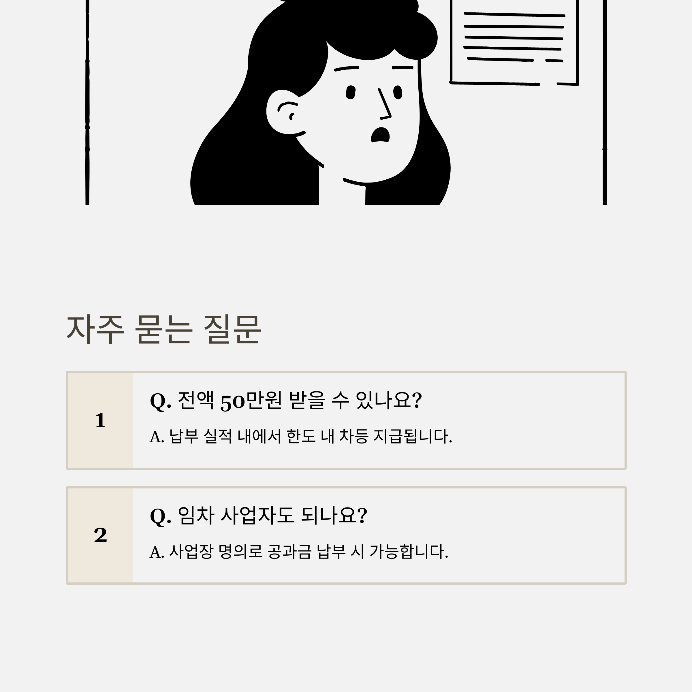 | 지원금액 | 최대 50만원(납부 실적 한도) |