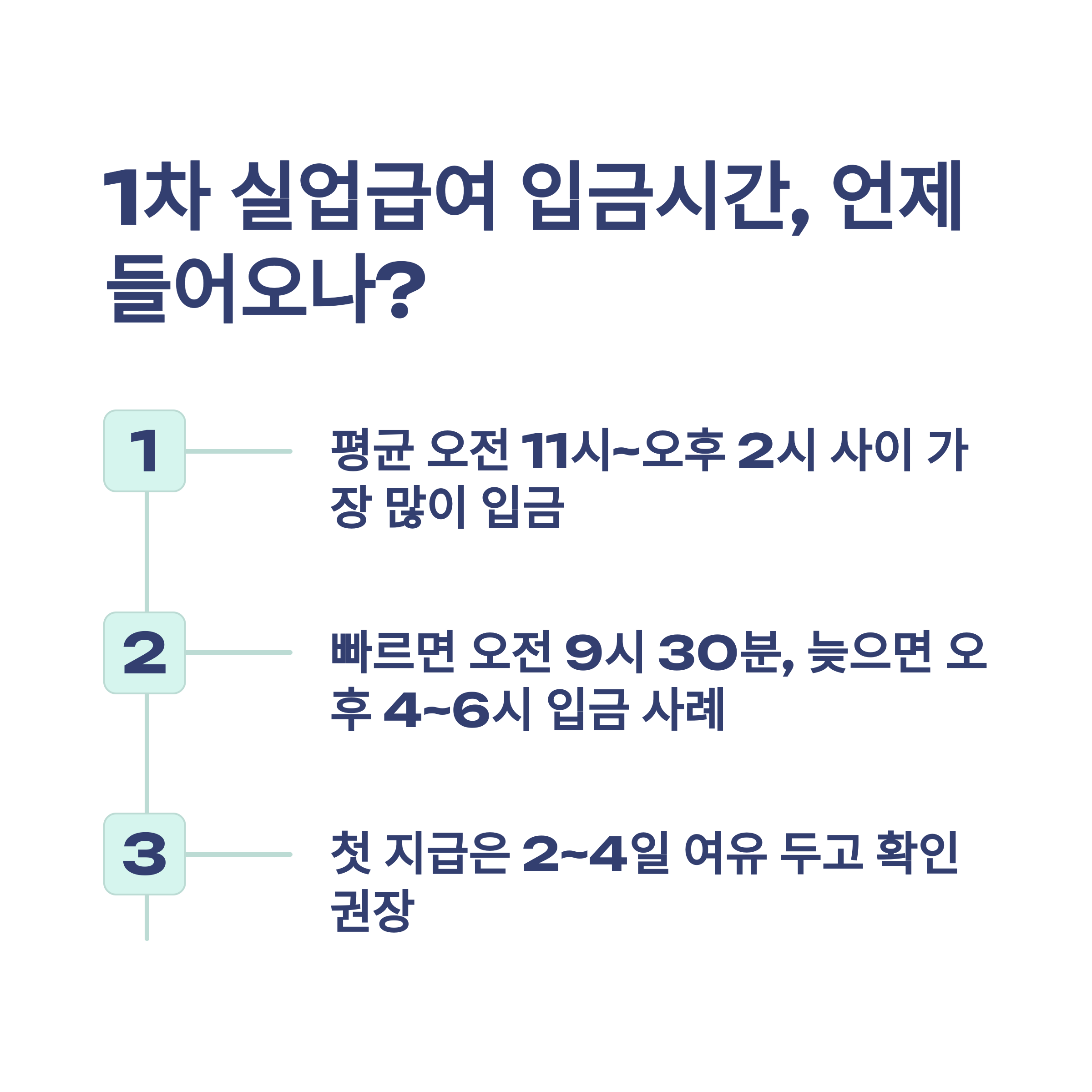| 1차 입금시간 | 실업인정일+1~4일, 오전 9시~오후 6시 순차 입금 |