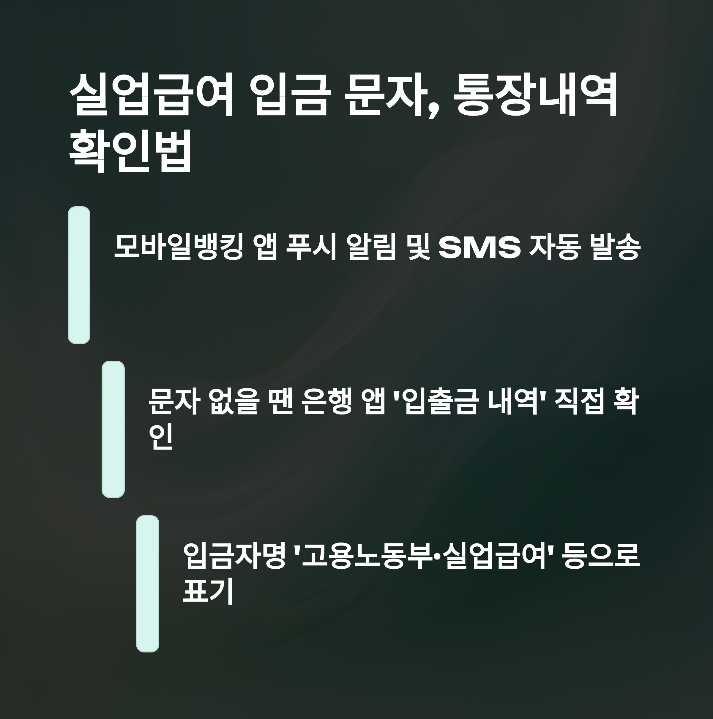 만약 문자나 알림을 못 받았을 경우에는, 해당 은행 앱에서 ‘입출금 내역’을 직접 확인하면 가장 확실합니다. 고용보험 홈페이지에서도 지급내역 조회가 가능합니다.
