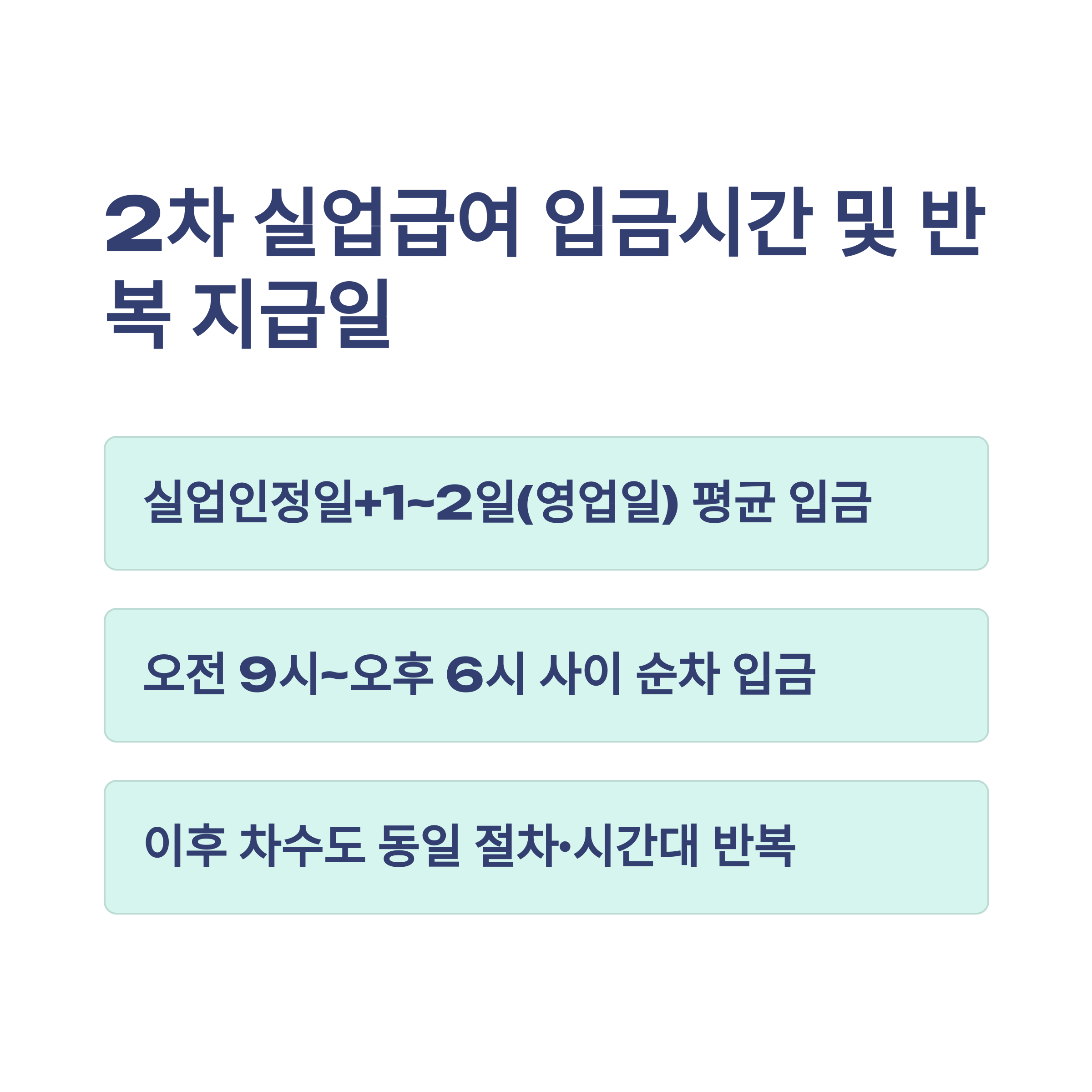 | 2차 이후 입금 | 실업인정일+1~2일, 동일 방식 반복 |