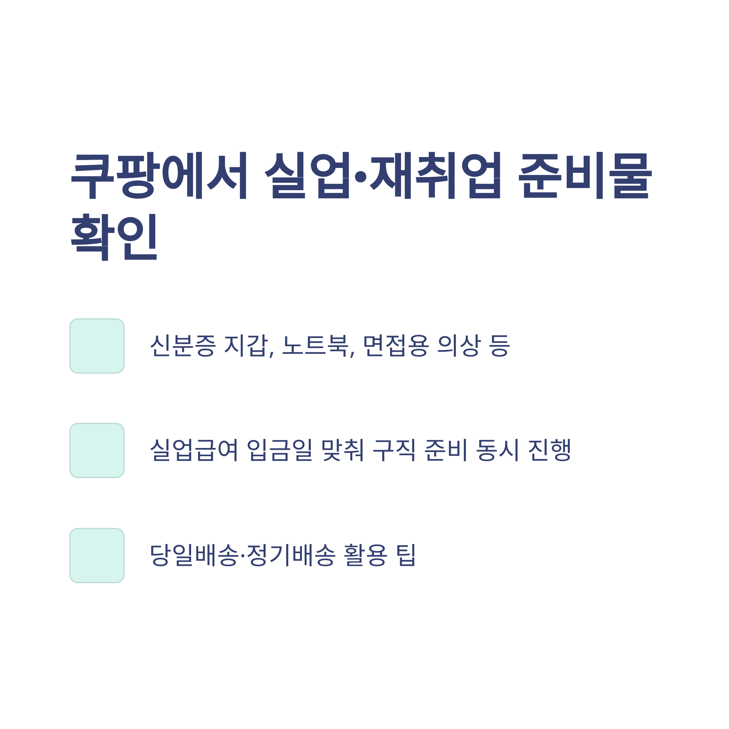 실업급여 입금일에 맞춰 구직활동을 준비하는 분들은 신분증지갑, 노트북, 면접용 의상, 자기소개서 양식 등도 미리 준비해두는 게 실전 팁입니다. 저 역시 쿠팡에서 필요한 준비물을 빠르게 찾아보고, 실전 면접용품도 챙겨 실업급여 수령과 동시에 재취업 준비까지 꼼꼼히 시작했습니다.