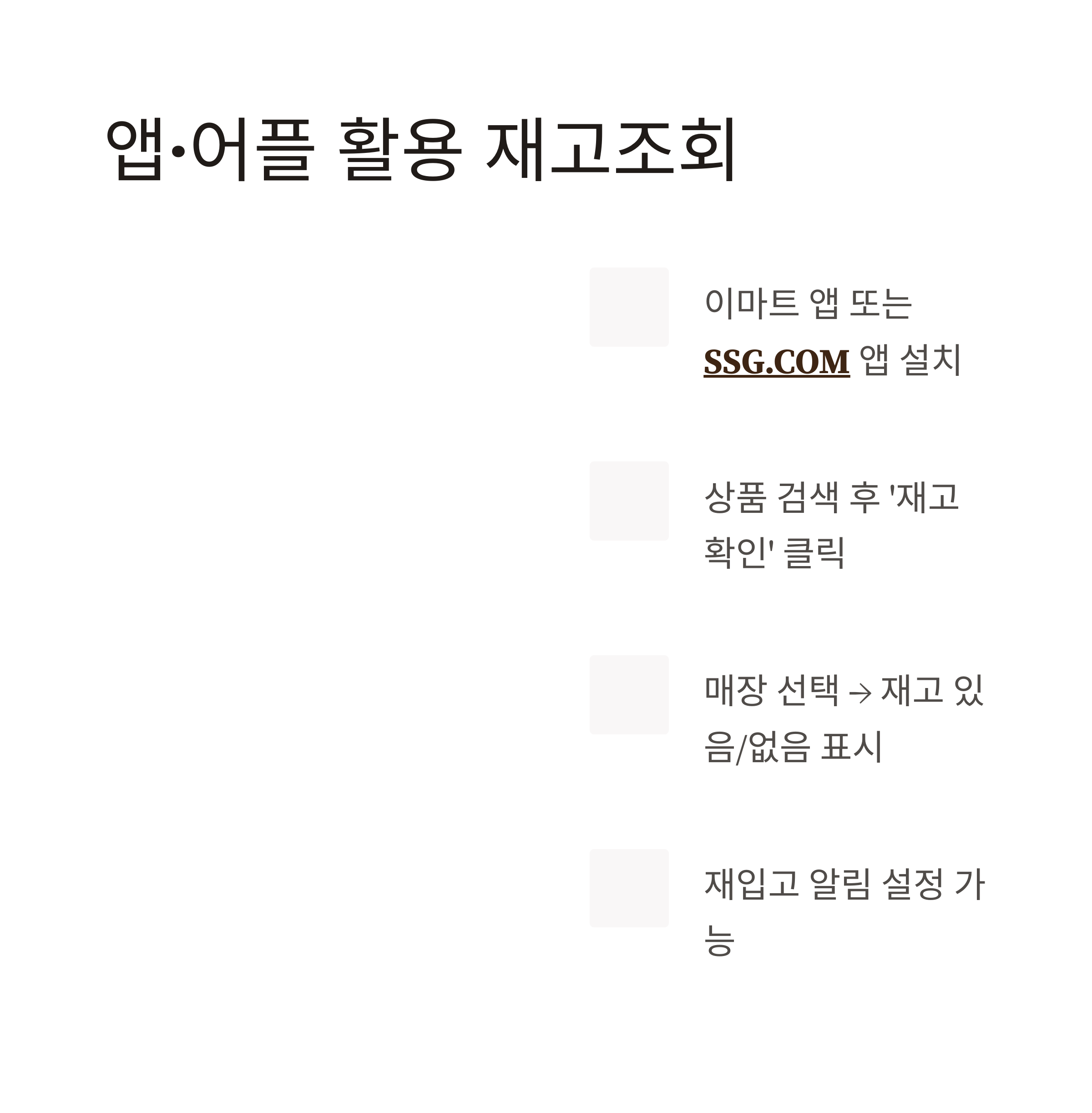 앱 – 어플(앱플리케이션)이라는 말만 바뀌지만 모두 비슷한 방식이고, 저는 두 앱을 병행해 사용합니다. SSG.COM 앱은 브라우저처럼 URL 없이 바로 재고 확인이 가능해 더 편리했어요.