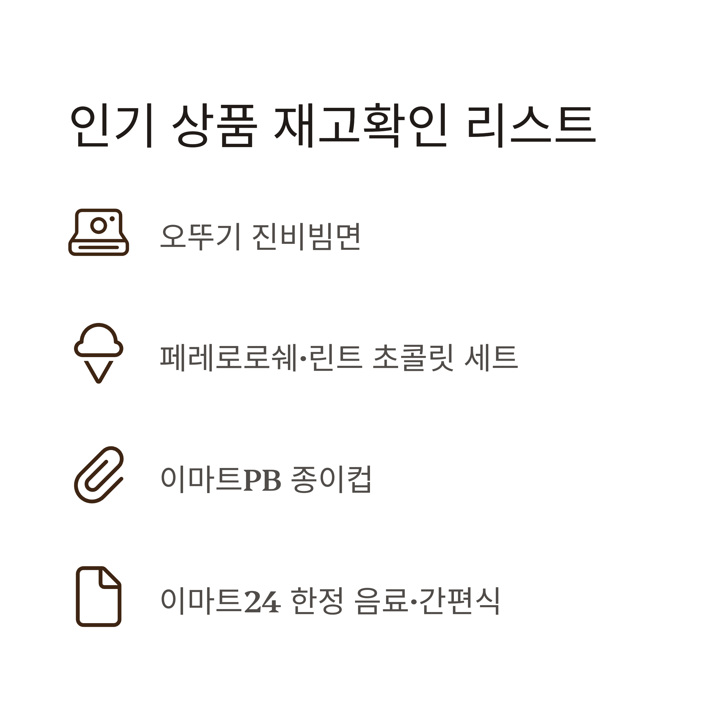 제가 자주 재고를 확인했던 상품들은 생활 필수품이나 한정판 제품이었어요. 대표적으로 ‘오뚜기 진비빔면’, ‘페레로로쉐 선물세트’, ‘이마트PB 종이컵’ 같은 제품들이 자주 품절되었고, 앱에서 재입고 알림을 설정해두면 정말 유용했어요.
