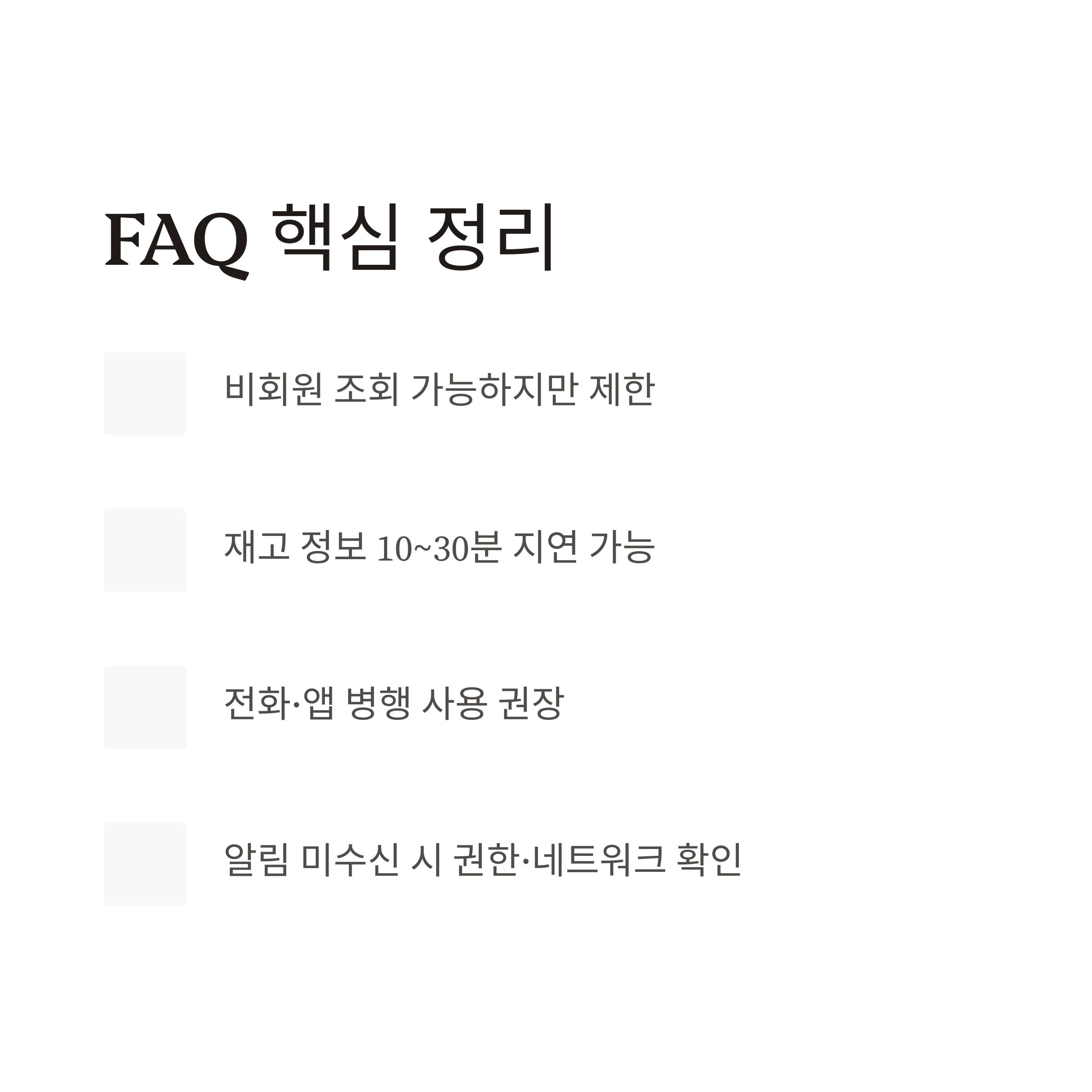 - ‘재고 있음’만 보고 바로 방문 → 오차 가능
