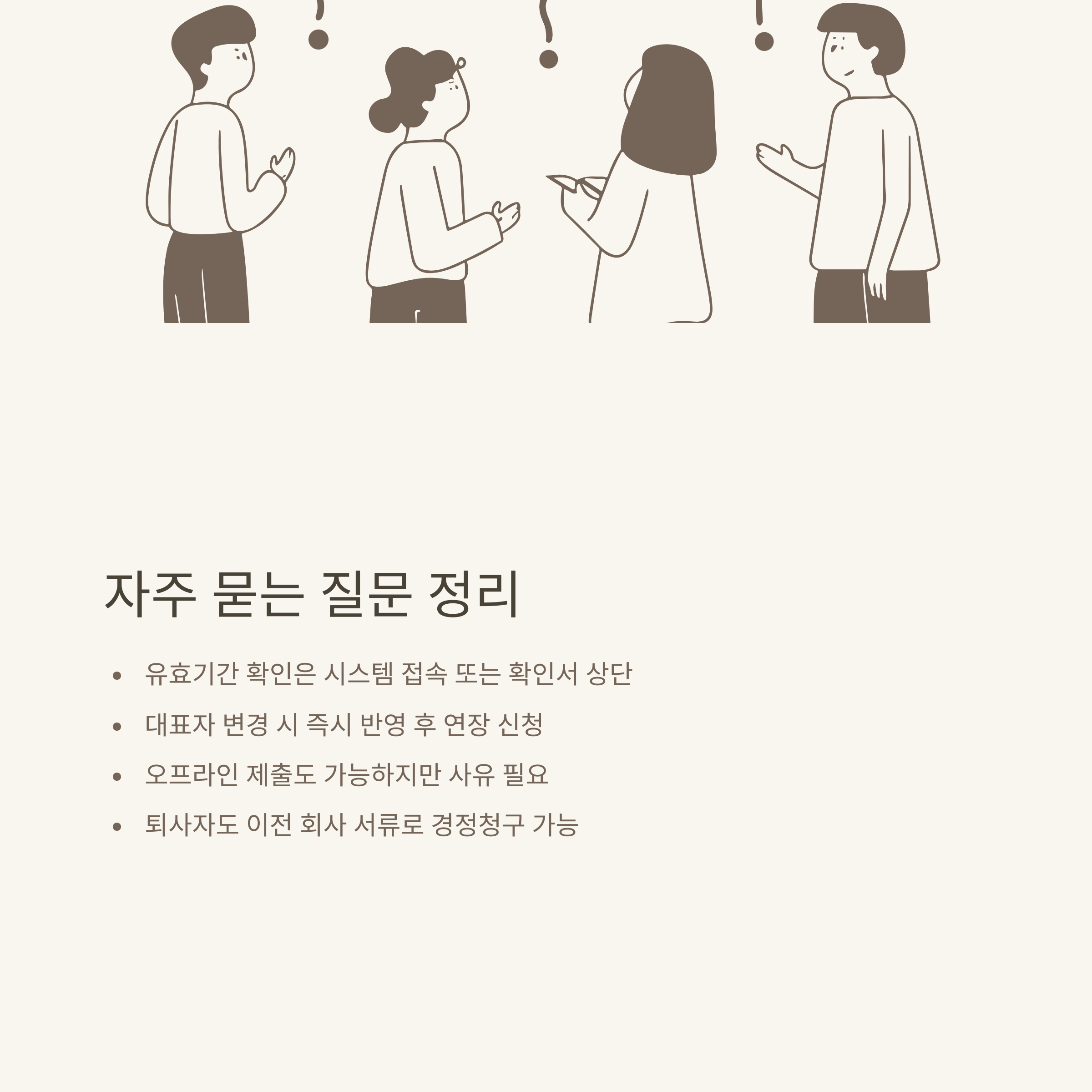 저도 분실로 재발급을 한 번 했었는데, 기존 확인서 번호와 유효기간이 똑같이 유지됩니다. 하지만 실적 변동 등 자격이 달라지는 경우엔 반드시 연장(갱신) 절차를 밟아야 한다는 점을 잊지 마세요.