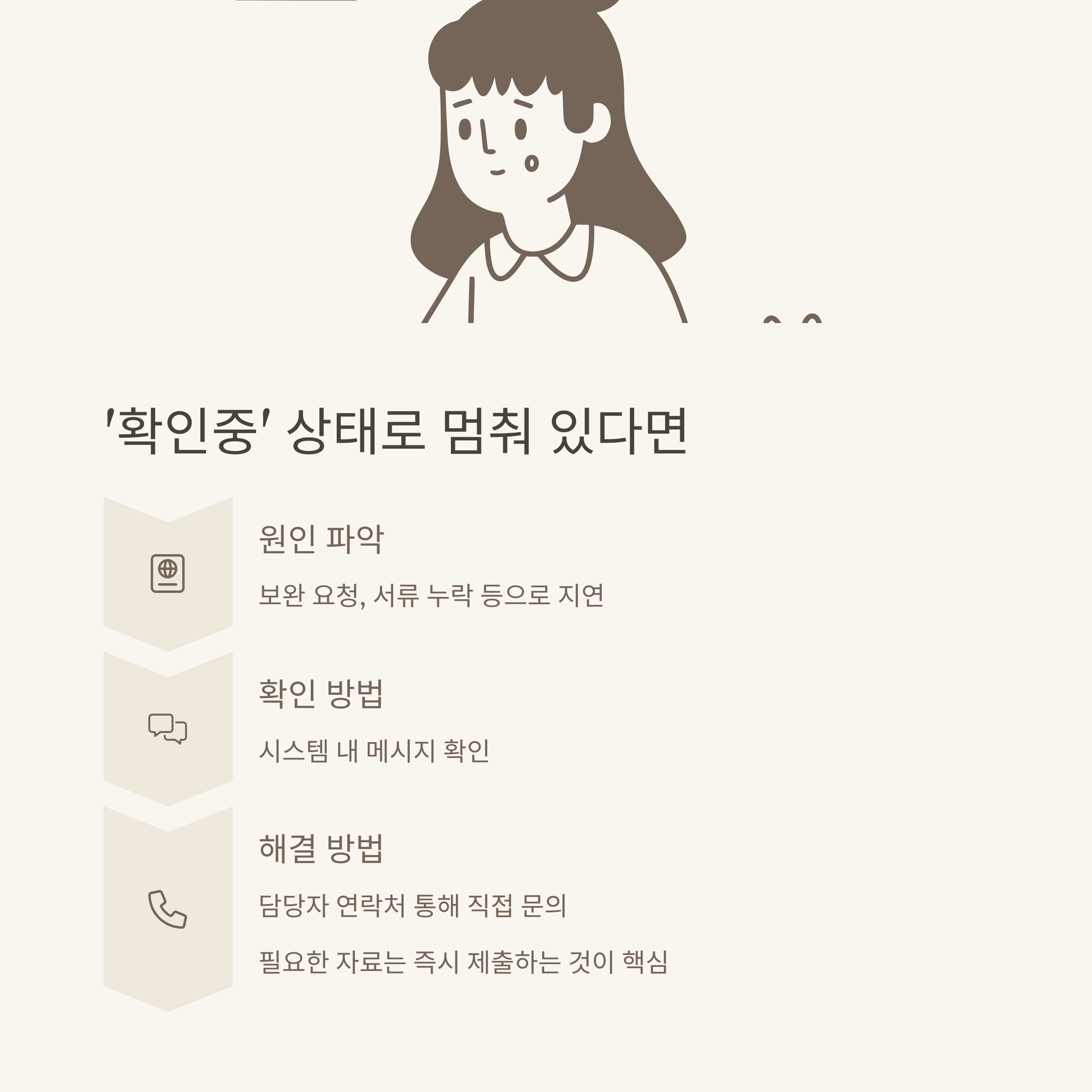 - 필수 서류 누락, 정보 불일치, 추가 자료 요청 시 상태가 길어질 수 있음