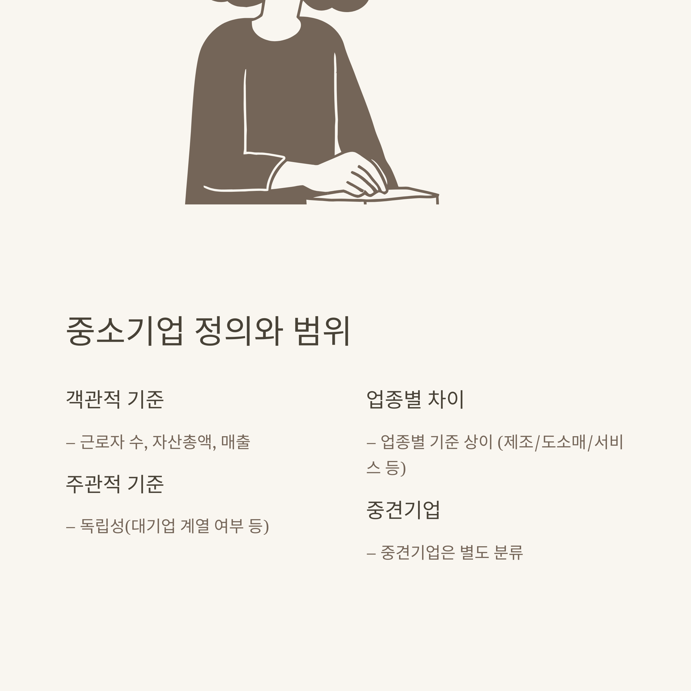 중소기업 기본법에서는 단순히 규모만이 아니라, 독립성, 자산총액, 업종별 특성 등도 모두 고려합니다.