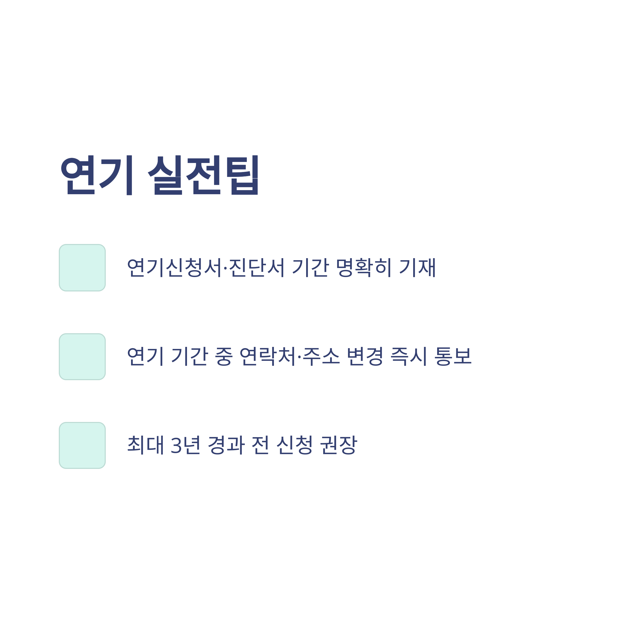 - 연기 기간 내 수급권 소멸(최대 3년 경과) 주의