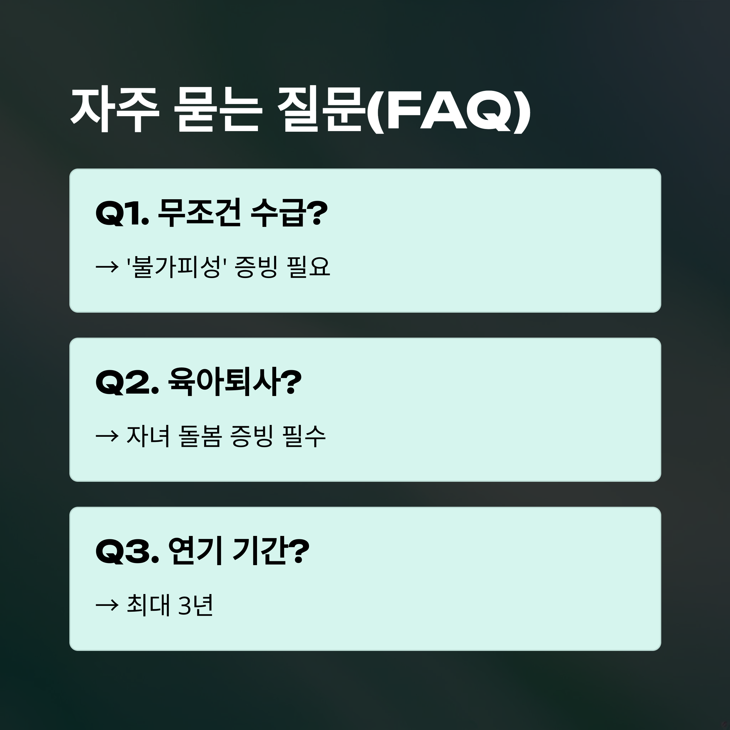 | 육아 퇴사 인정 | 자녀 만 8세 이하, 돌봄 불가·위탁 불가 증빙 필요 |
