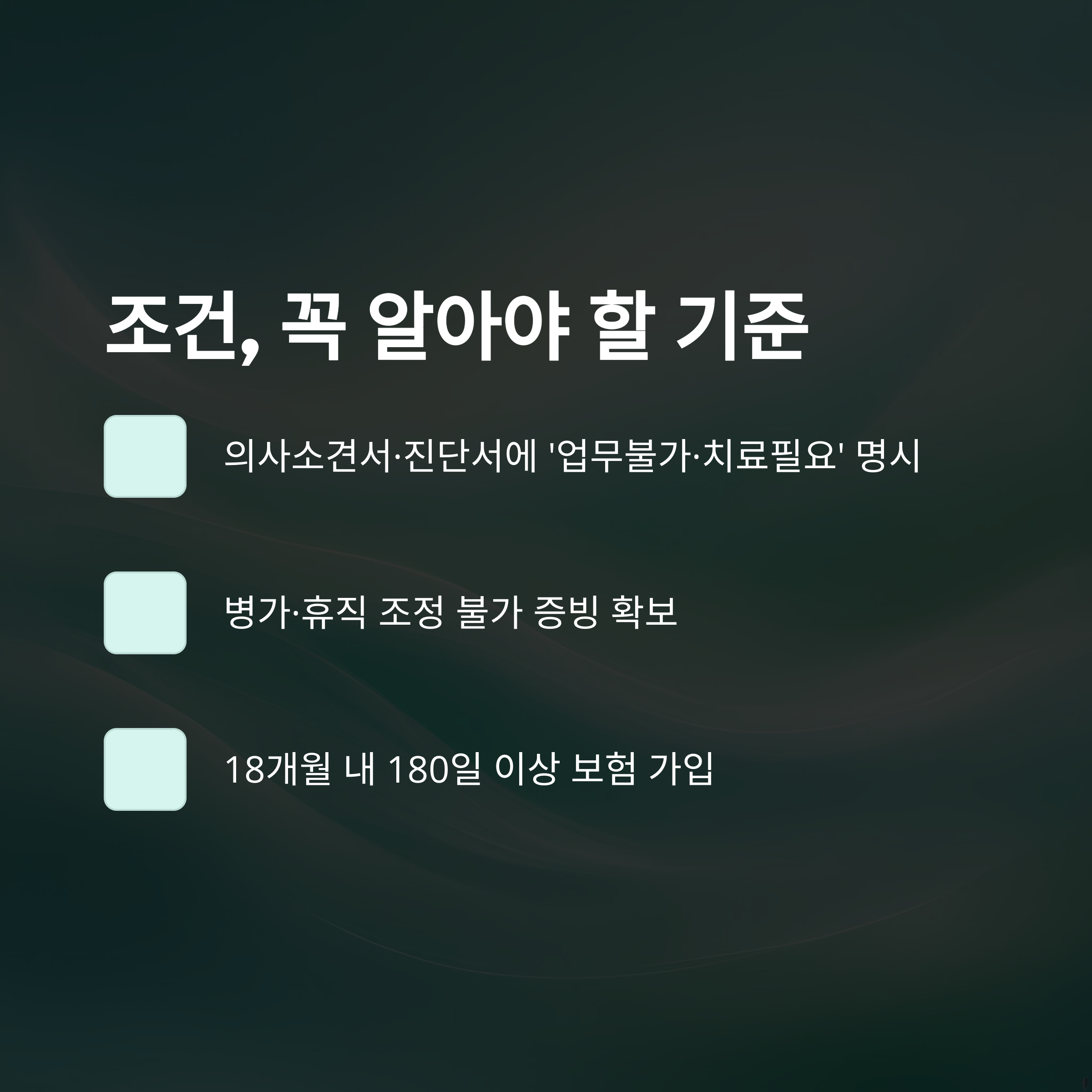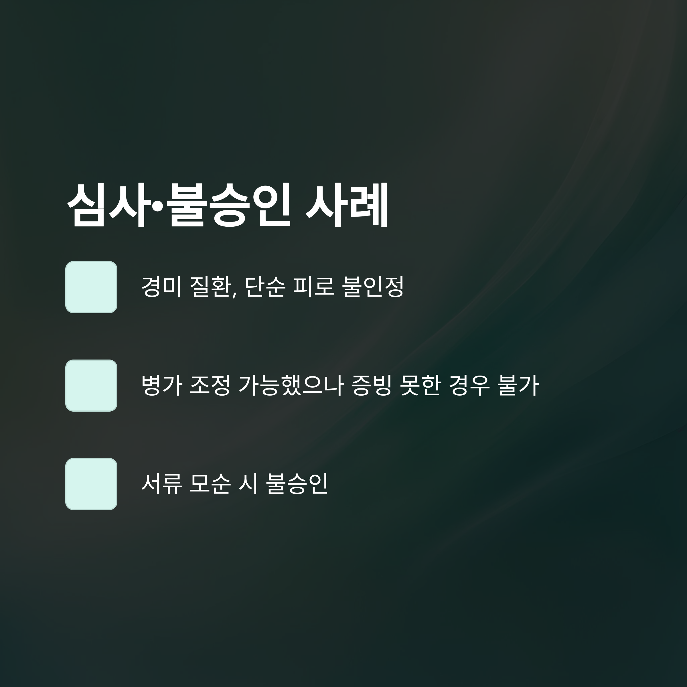 - 단순 피로·스트레스, 경미한 질환은 인정되지 않음