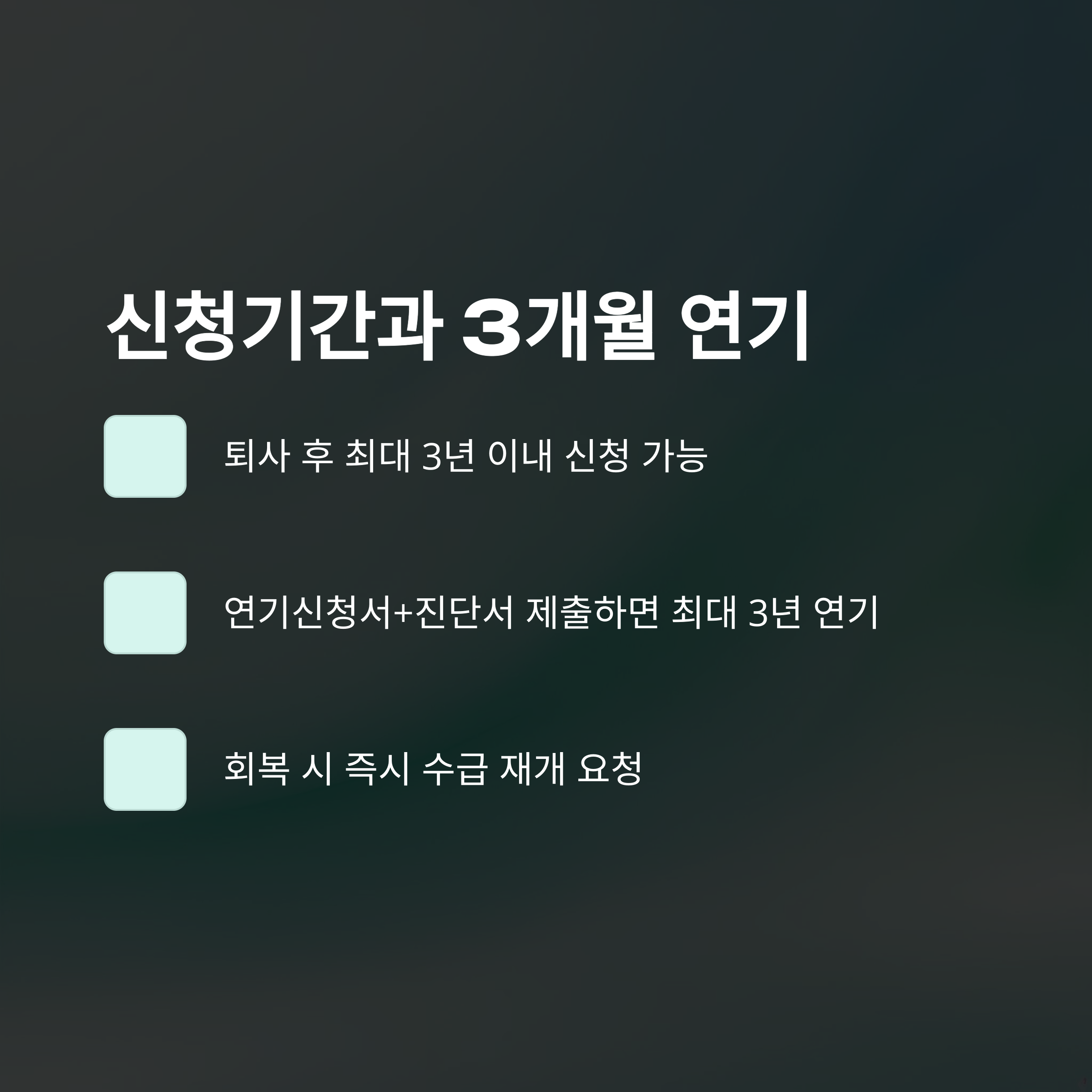 - 연기 신청 후, 건강이 회복되면 즉시 수급 재개 요청