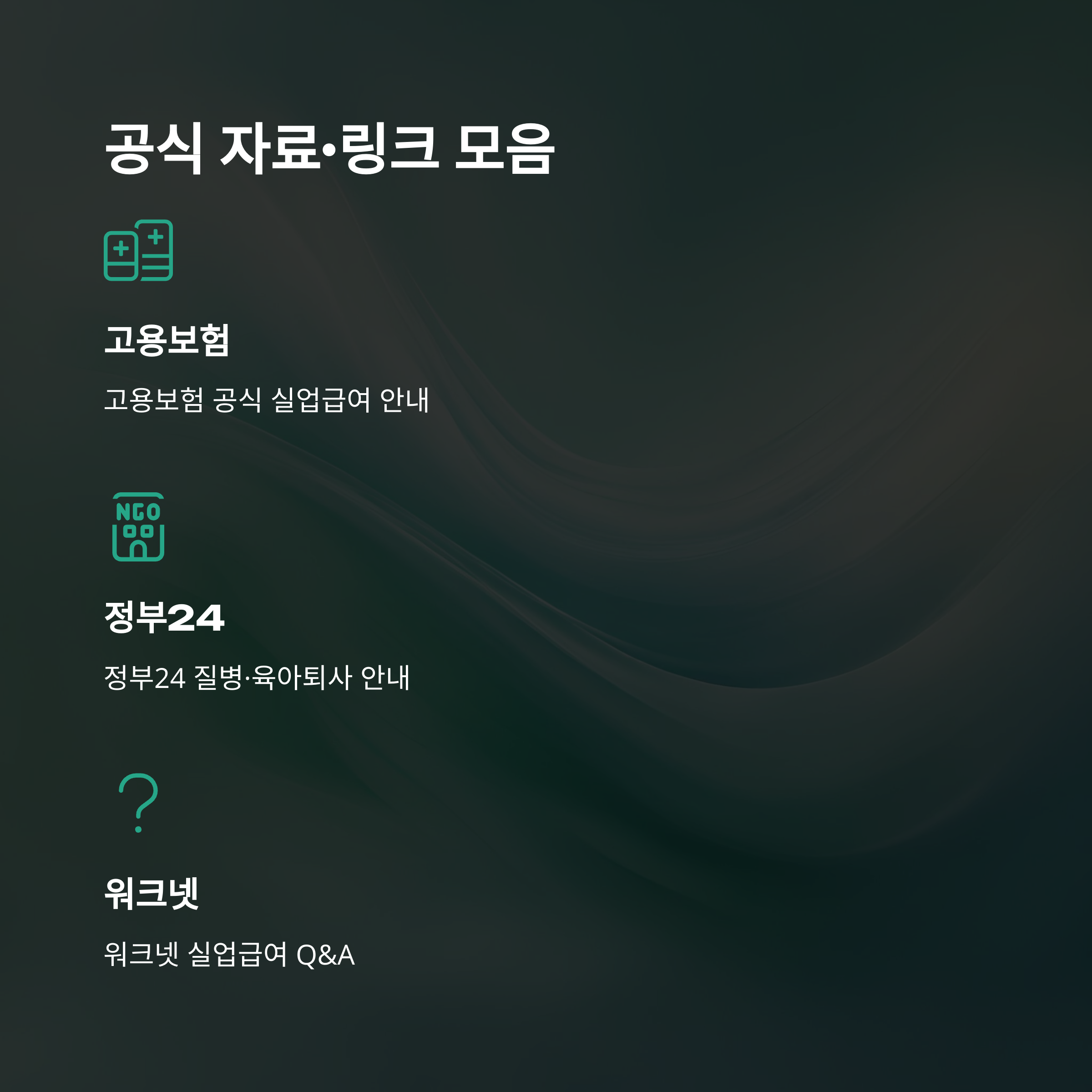 질병·육아 퇴사 실업급여와 관련한 공식 자료, 실제 Q&A, 서류양식, 최신 안내 등은 아래 외부 링크에서 한 번에 확인할 수 있습니다. 실제로 저도 준비 단계에서 이 자료들을 저장해두고 활용했습니다.