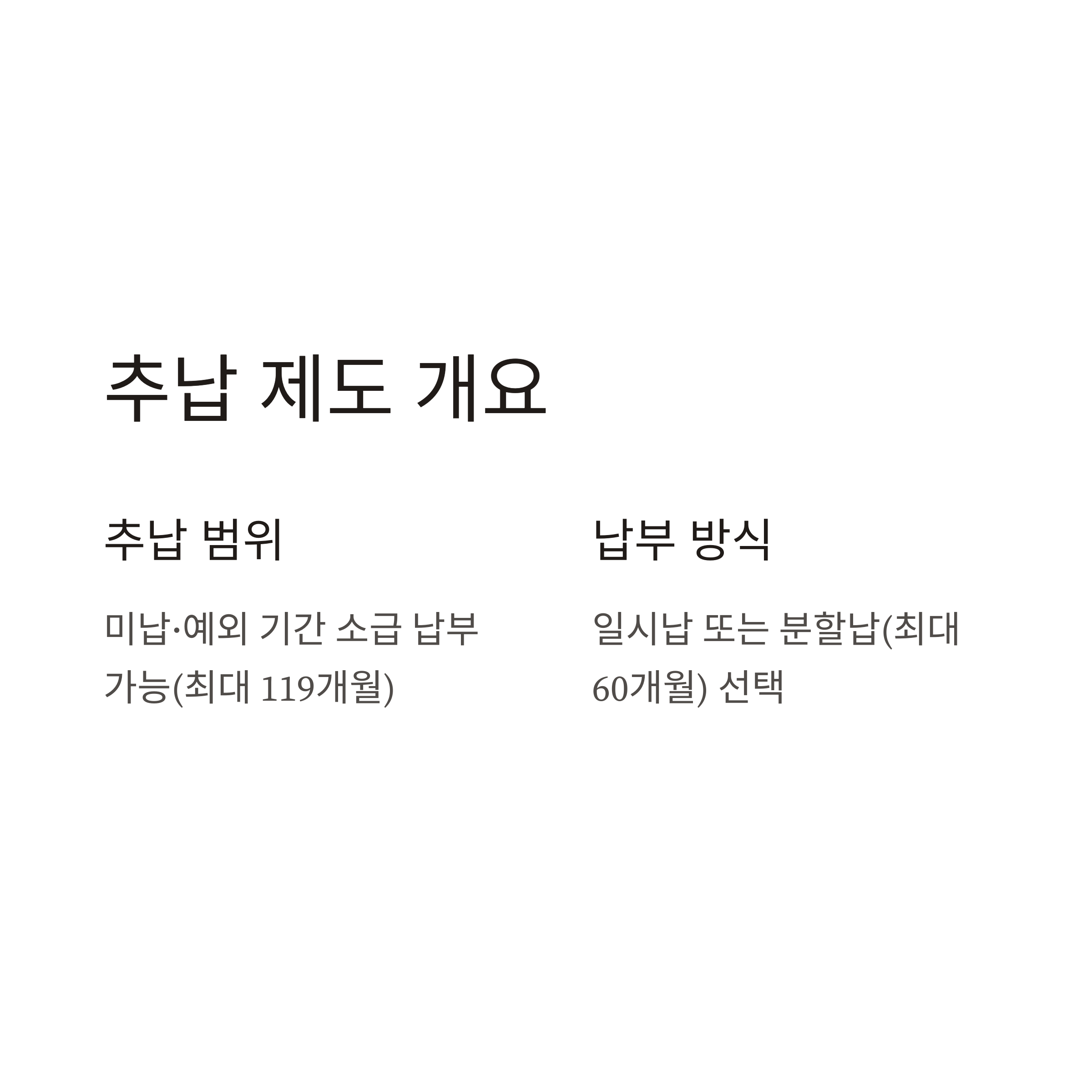 | 추납 | 최대 119개월 가능, 분할납부 가능 |