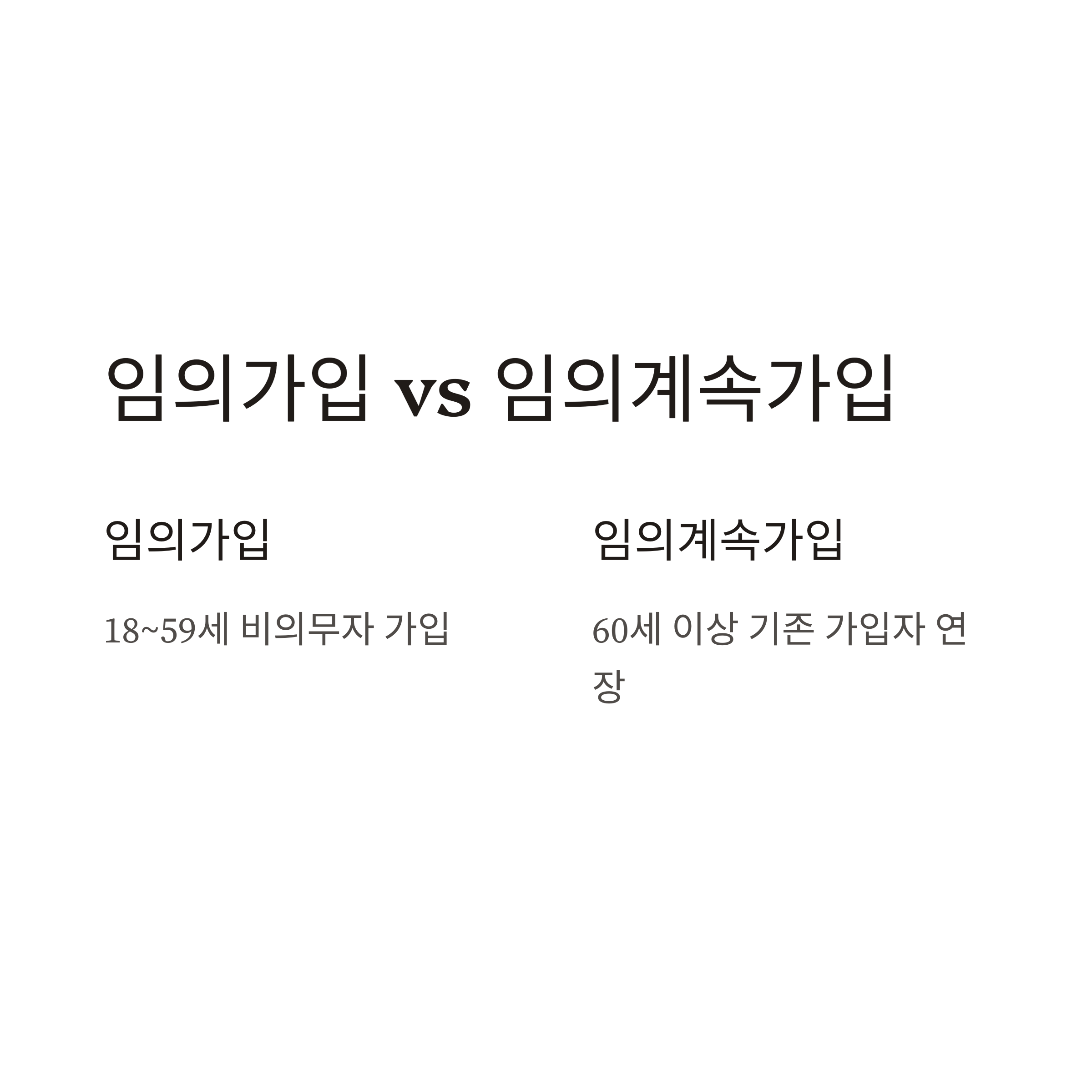 | 대상 | 만 18~59세 비의무자 | 만 60세 이상 국민연금 가입자 |