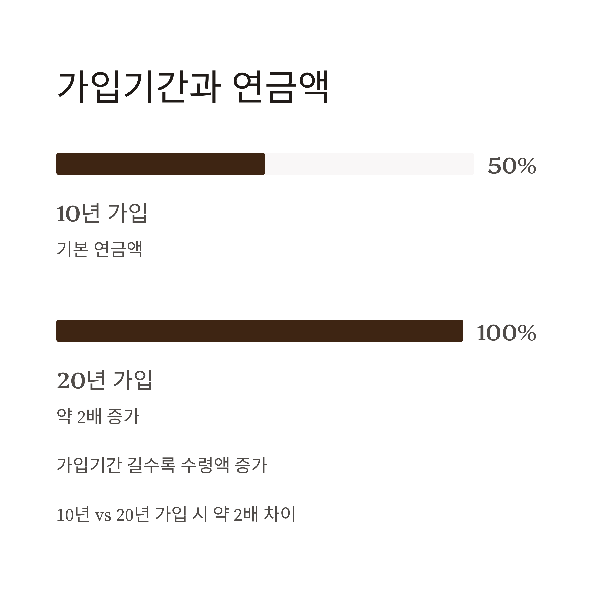 국민연금은 기본적으로 ‘얼마나 오래 가입했는가’가 연금 수령액에 직접적인 영향을 미칩니다. 제가 국민연금공단에 방문했을 때도 직원분이 강조했던 부분이 바로 이 가입기간이었어요.