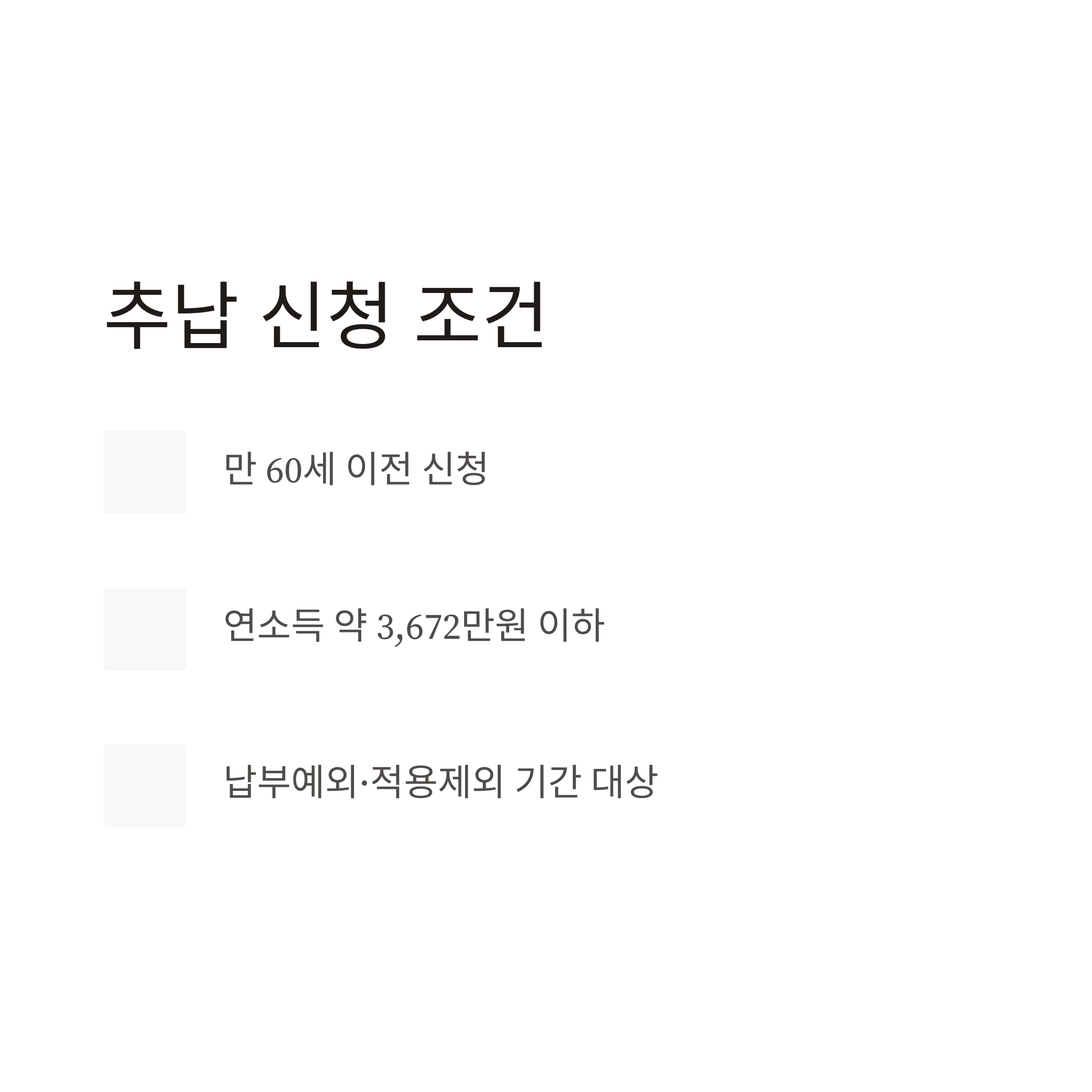 - 적용 대상: 납부예외, 납부제외, 인정되지 않은 가입기간