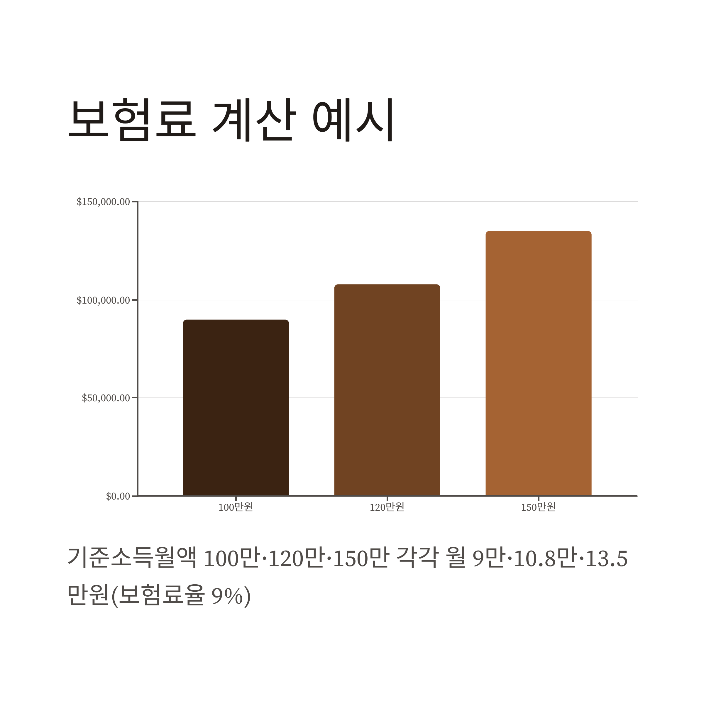 퇴사 후 지역가입자로 전환된 뒤 가장 신경 쓰였던 건 보험료였습니다. 저는 기준소득월액을 120만원으로 설정했기 때문에, 월 보험료는 10만 8천원(9%) 정도가 나왔습니다. 아래는 보험료 계산 예시입니다.