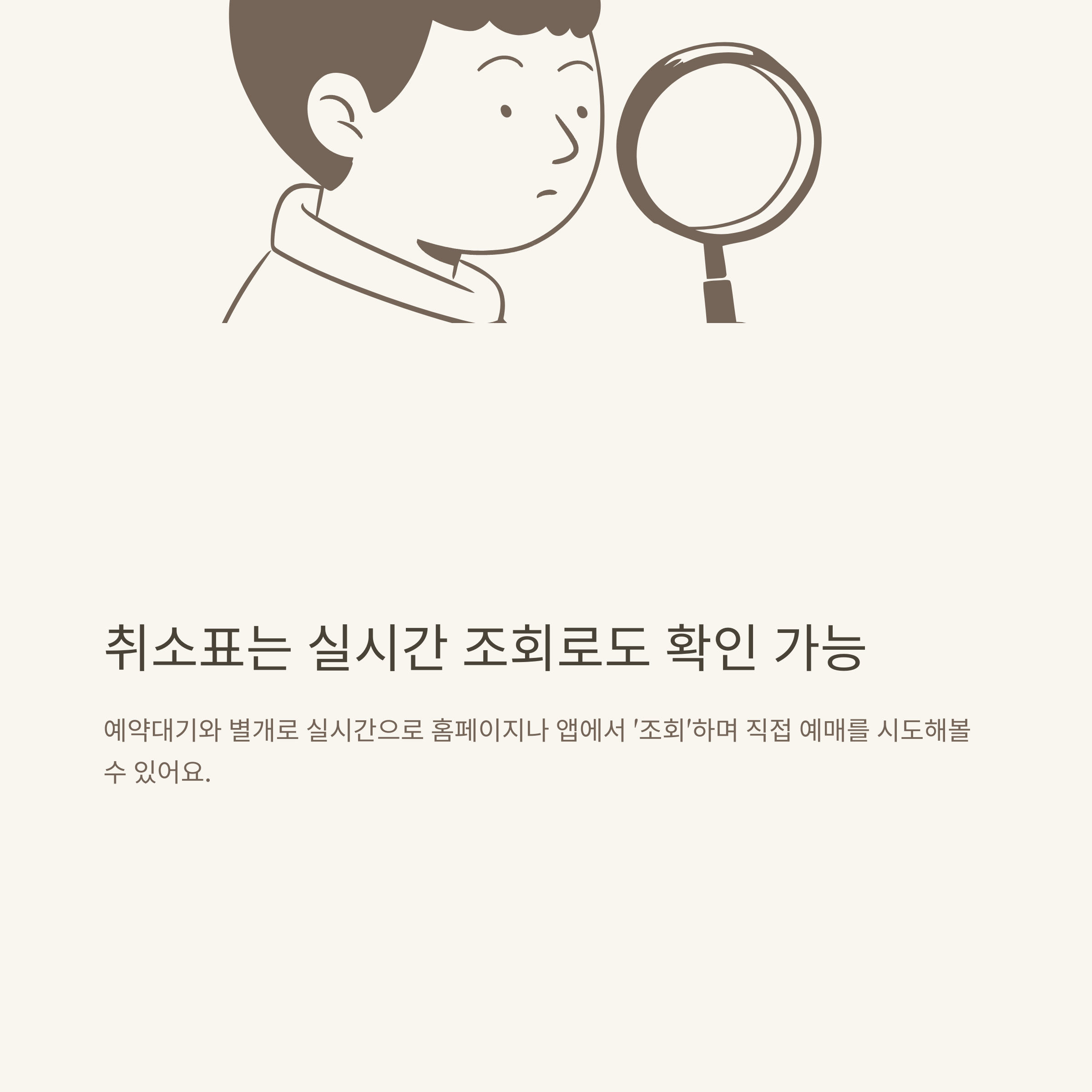 는 예약대기 신청 후에도 혹시나 싶어서 실시간으로 취소표가 나오는지 직접 확인하는 습관이 생겼습니다. 공식적으로는 예약대기 시스템이 자동 배정이지만, 홈페이지·앱에서 직접 표가 풀리는 순간 바로 예매하는 ‘취소표 선착순’ 기회도 남아 있습니다. 실시간 취소표 확인법을 정리해보면,